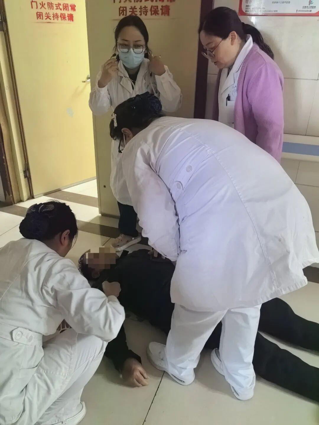 听到呼喊声后,妇科医生沈瑞芳、郭一培、刘雅雅,护士长王丹丹、护士刘媛媛立刻放下手中的工作,第一时间拿起血压计、血糖仪等急救设备,以最快的速度奔赴事发地点。