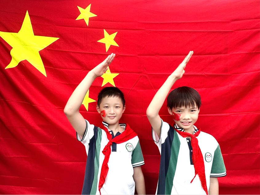 校园里,同学们手持小国旗,脸上贴着国旗贴纸,在操场上欢快奔跑,用充满活力的姿态展现着新时代少年的蓬勃朝气。在国旗前,少先队员们庄重敬礼,那一个个标准的队礼,是他们对祖国最真挚的敬意,彰显着作为新时代接班人的使命感与责任感。