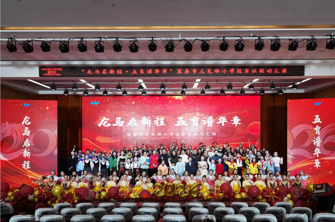 冬日暖阳洒校园,三方齐聚绽芳华。1月9日,江西宜春市文笔峰小学(含崇文小学)“龙马启新程 五育谱华章”校家社联动汇演温情启幕,家长、老师、社区伙伴与孩子们同台献艺,共赴一场充满爱与成长的美好盛宴。