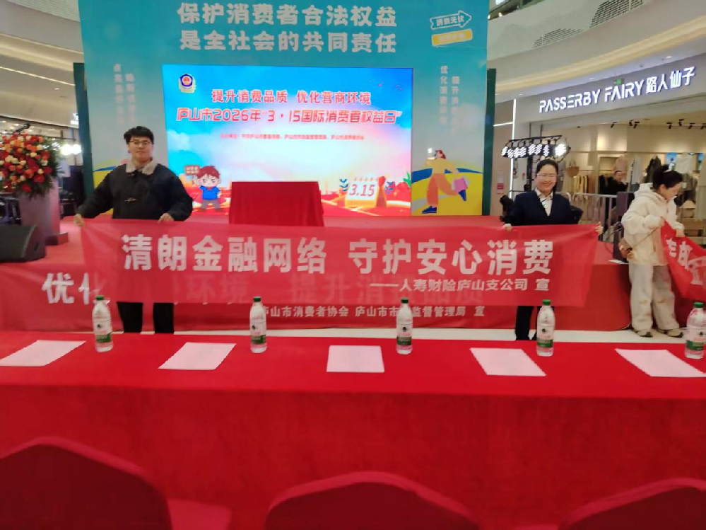 在“3·15”国际消费者权益日来临之际,为切实提升社会公众金融素养,有效防范化解金融风险,全力营造和谐健康的金融消费环境,近日,中国人寿财险庐山支公司积极响应星子金融监管支局号召,于庐山市铜锣湾广场正式启动以“清朗金融网络 守护安心消费”为主题的系列教育宣传活动。