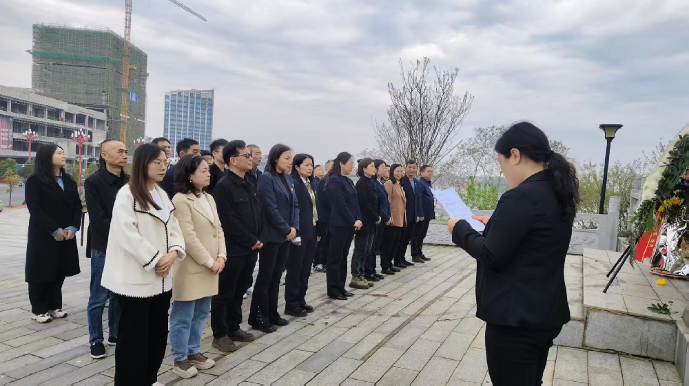 活动现场庄严肃穆,烈士纪念塔巍然矗立,镌刻着革命先烈为民族独立、人民解放英勇奋斗的峥嵘岁月。各单位党员代表身着正装、神情庄重,整齐列队于纪念塔前,以标准礼仪向革命先烈致以崇高敬意。活动在雄壮的国歌声中拉开序幕,全员肃立默哀,用三分钟静默表达对先烈的深切追思。随后,党员代表缓步上前,郑重敬献花圈,仔细整理挽联,以素雅的白花寄托对英烈的无限崇敬。