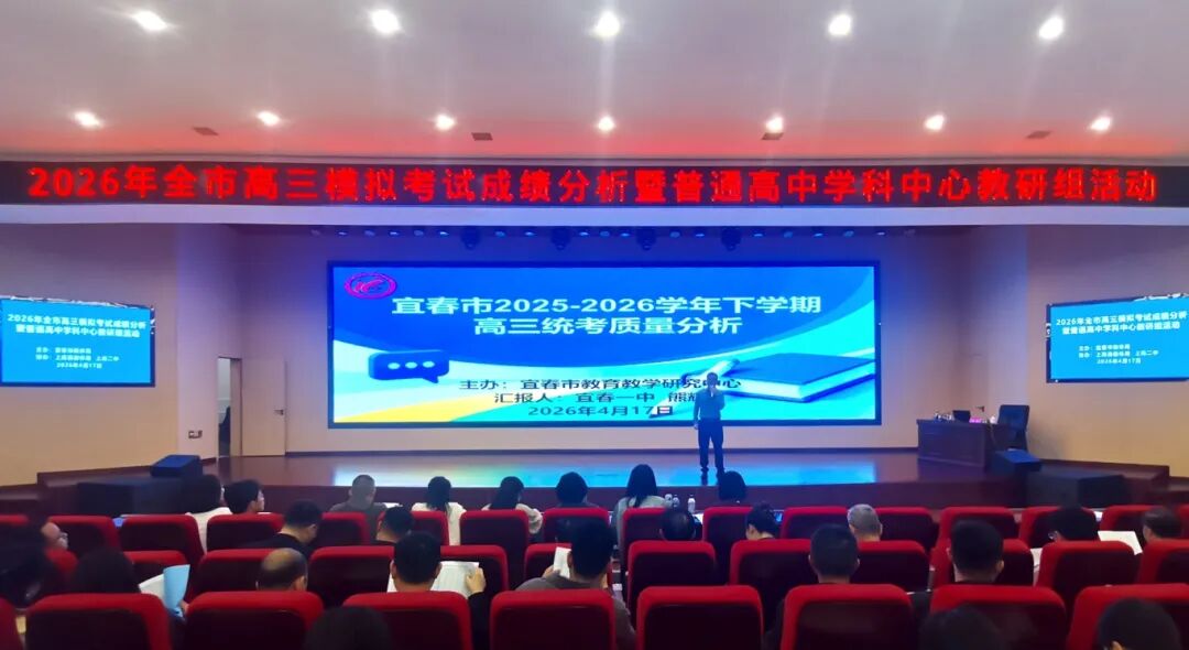 为科学谋划2026届高三年级下一阶段复习迎考工作,4月17日,江西宜春市教育体育局在上高二中举行全市普通高中学科中心教研组活动。