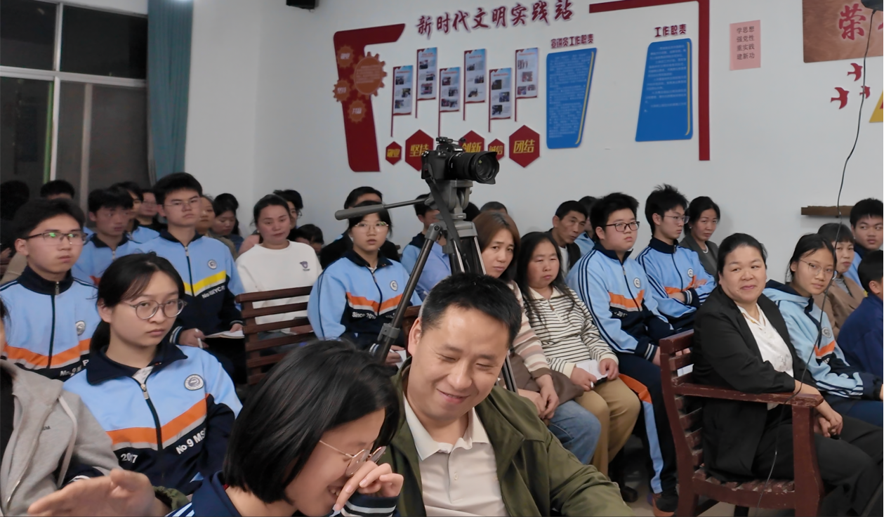 这两幕温暖的画面,来自宜春九中(外国语学校)《震山夜话》家长课堂第六期。当晚,活动以“我就这样了——家校社携手,拆掉孩子心里的墙”为主题,走进厚田社区。社区书记、班主任代表、家长代表、学生代表围坐一堂,围绕中学生“躺平”“自我设限”等心理痛点,面对面交流,共探青少年心理健康教育新路径。
